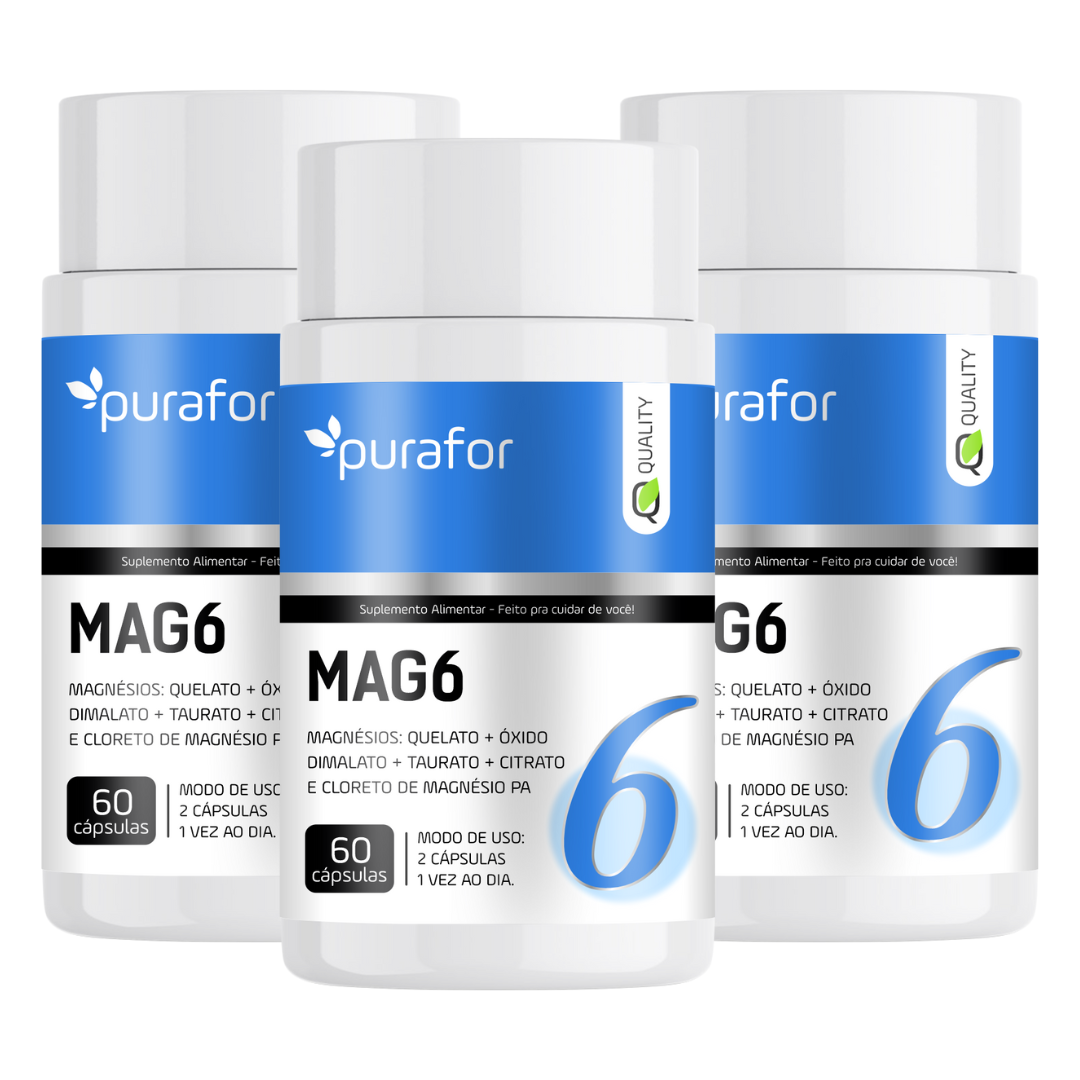 O Magnésio Mag 6 Tipos de Magnésio em 1 é a solução ideal para quem busca aumentar seu bem-estar e otimizar sua saúde. Com uma fórmula avançada que combina seis tipos diferentes de magnésio, este suplemento oferece 350 mg de magnésio por porção de duas cápsulas, atendendo a 83% da dose diária recomendada para um adulto. Recomendado para pessoas a partir de 12 anos, este produto promove saúde muscular, suporte ao sistema nervoso e ajuda a manter os níveis de energia. Em um formato prático de cápsulas, o MAG6 é fácil de ingerir e não possui sabor, tornando-o uma escolha conveniente para o seu dia a dia. Os ingredientes incluem Citrato, Cloreto de magnésio PA, Dimalato, Magnésio quelato, Taurato e Óxido de magnésio, todos reconhecidos por suas propriedades benéficas. Indispensável para quem busca um suporte nutricional eficaz, o Magnésio Mag 6 é uma adição valiosa à sua rotina de vitaminas e minerais. Se você procura um suplemento que combina qualidade e eficácia, o MAG6 da marca Purafor é a escolha perfeita. Experimente e descubra como a combinação poderosa de tipos de magnésio pode transformar sua saúde.