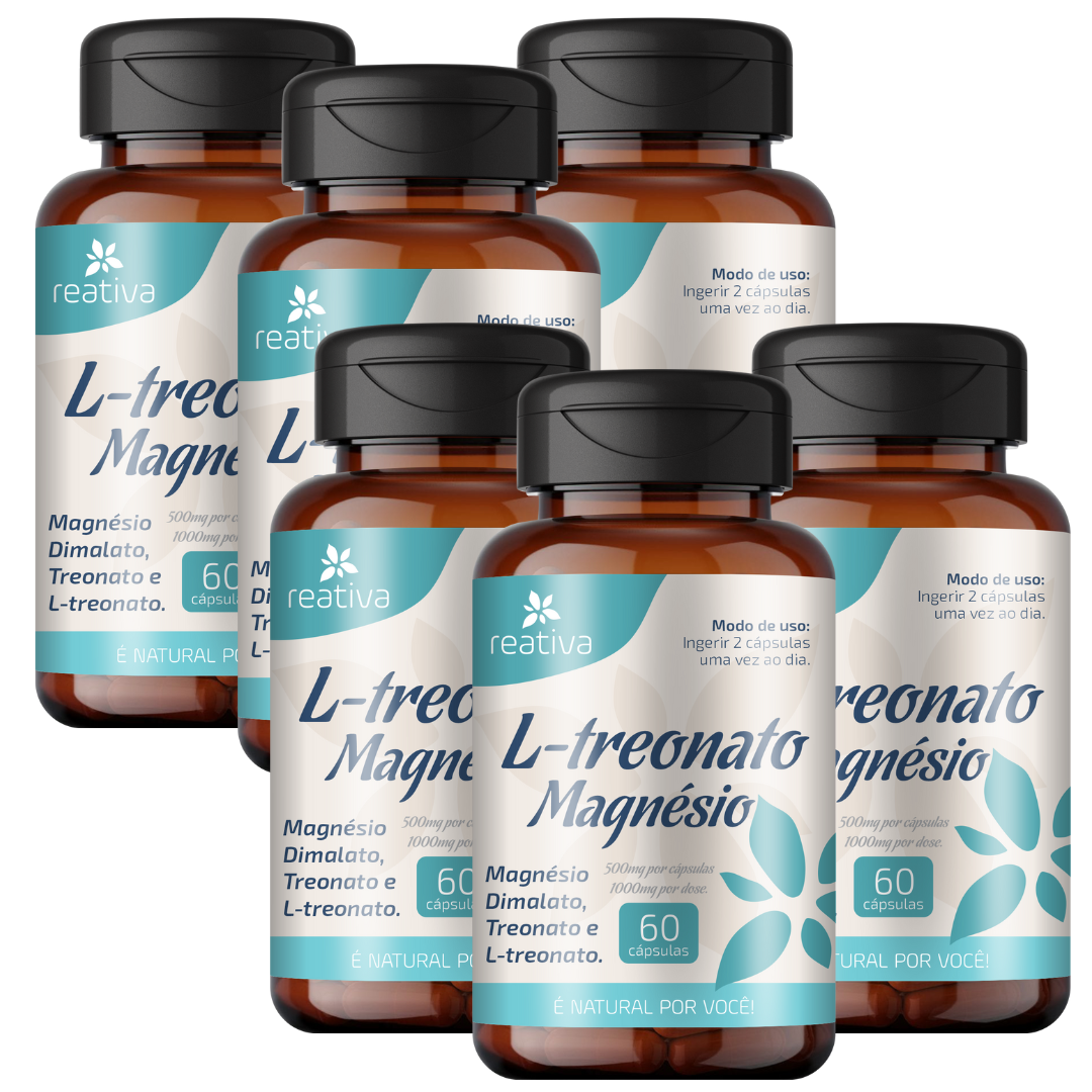 Magnésio L- Treonato de Magnésio - Dimalato e Treonina - 60 Cápsulas - 6 Unidades